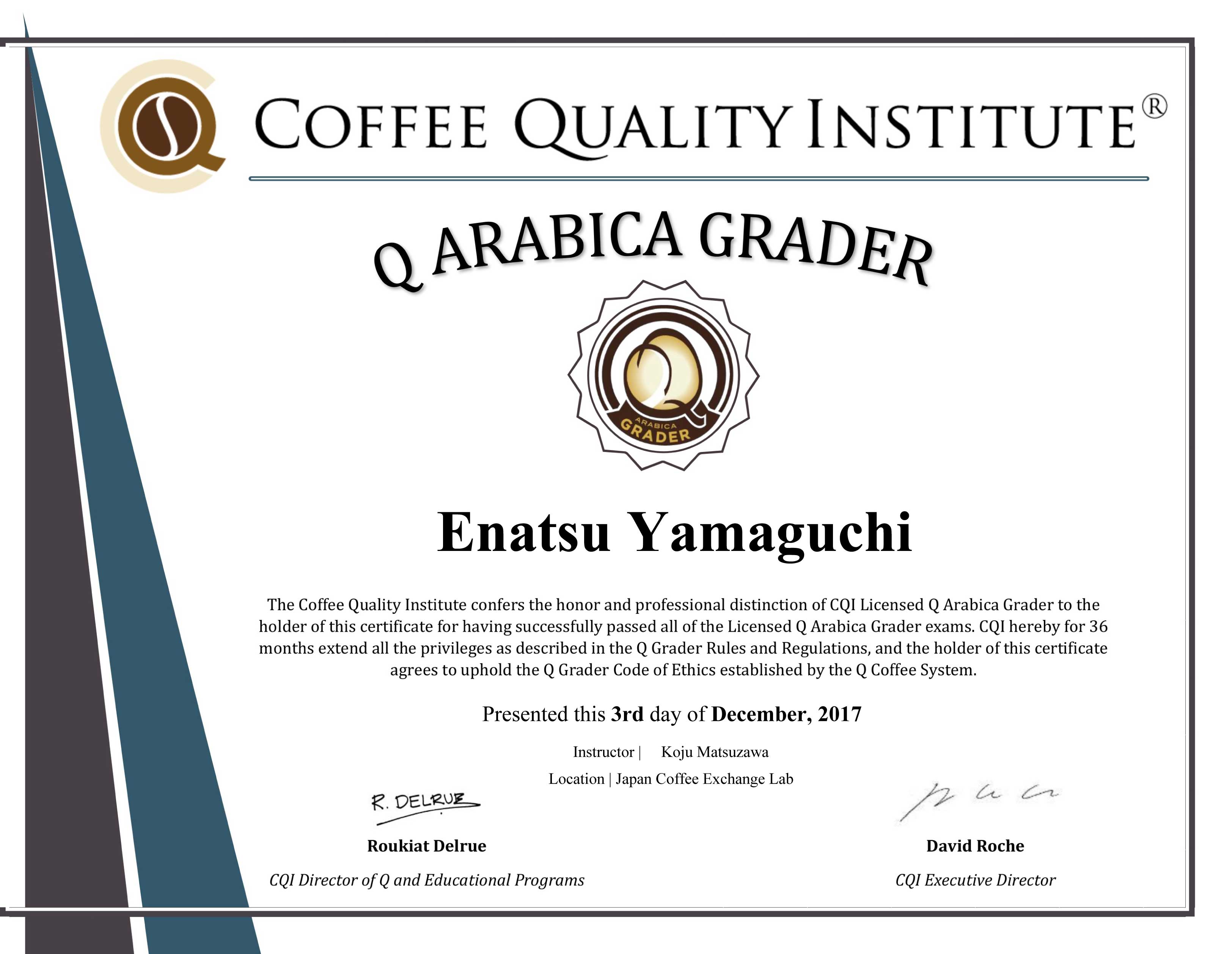 Qグレーダー、合格しました!!!!