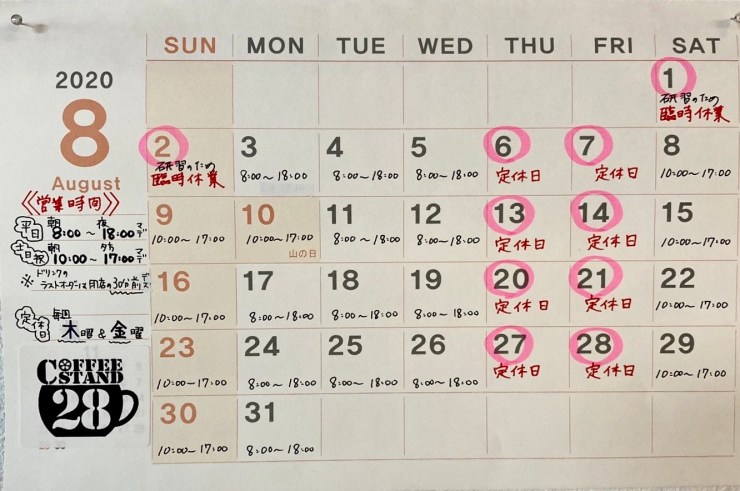 7月 30, 2020coffeestand28 8月の営業予定 8月1日(土)・2日(日)は「Qアラビカグレーダー資格更新テスト」受験のため休業いたします。 共有: Facebook で共有 (新しいウィンドウで開きます) Facebook X で共有 (新しいウィンドウで開きます) X いいね 読み込み中… 関連