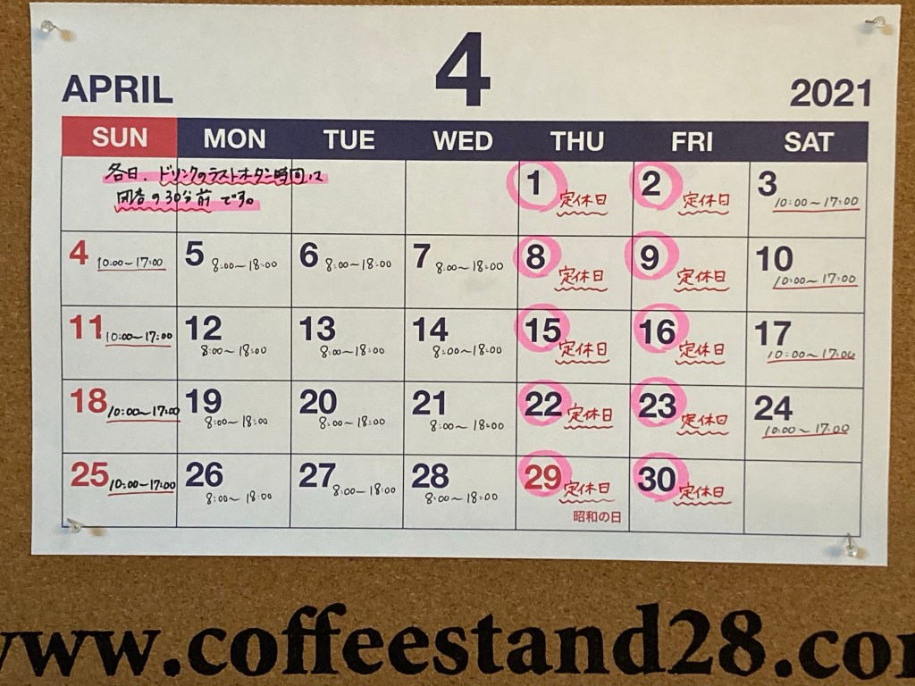 4月 7, 2021coffeestand28 4月の営業予定 新年度が始まりましたね。南郷18丁目界隈で新生活を始めた方もいらっしゃると思います。機会がありましたら是非お立ち寄りくださいませ! 共有: Facebook で共有 (新しいウィンドウで開きます) Facebook X で共有 (新しいウィンドウで開きます) X いいね 読み込み中… 関連