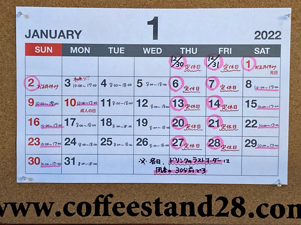 1月 12, 2022coffeestand28 1月の営業予定 あけましておめでとうございます。本年もよろしくお願い申し上げます。 共有: Facebook で共有 (新しいウィンドウで開きます) Facebook X で共有 (新しいウィンドウで開きます) X いいね 読み込み中… 関連
